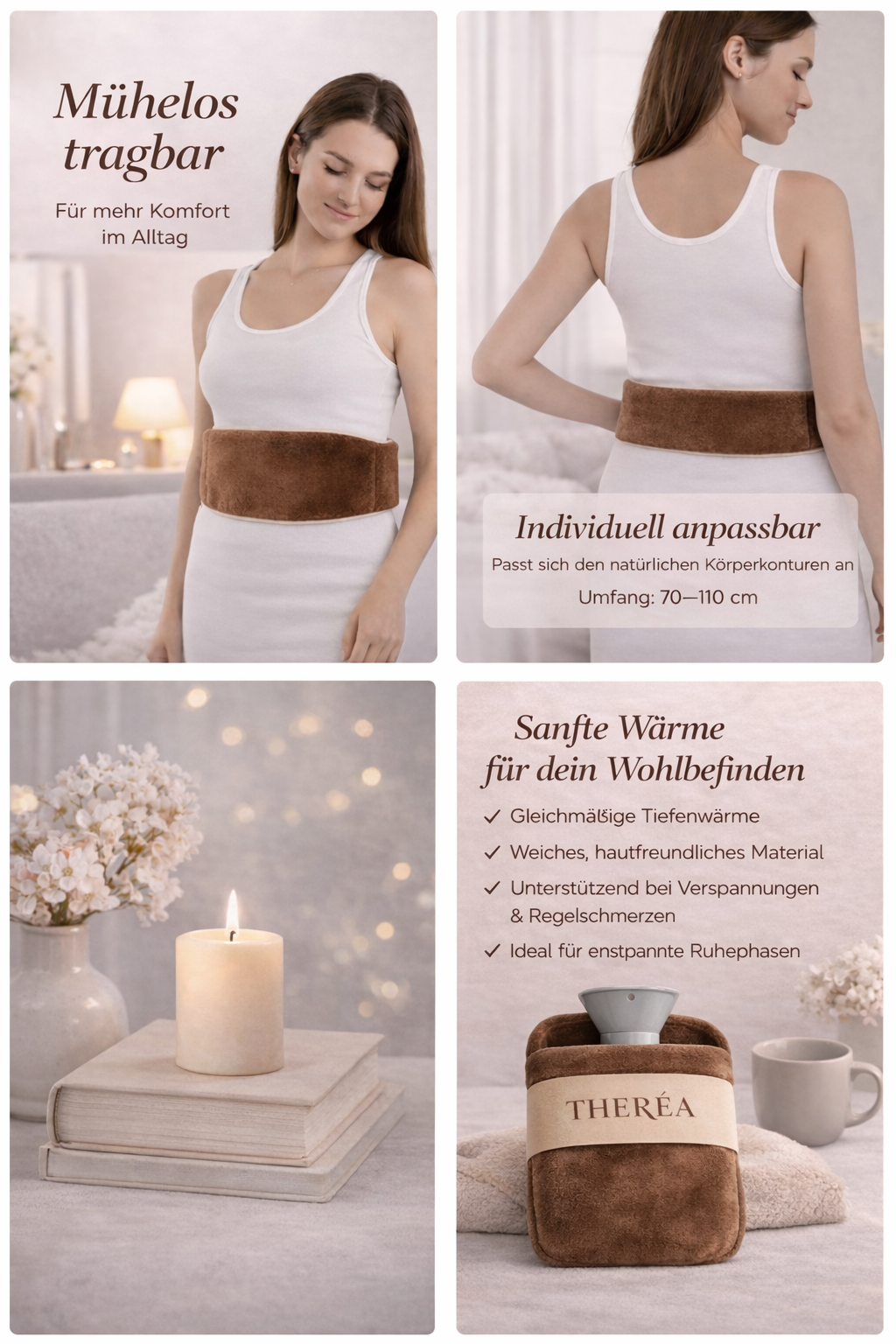 Unsere Wärmeflasche mit weichem Bauchgurt wurde speziell für Frauen entwickelt, die sich nach Entspannung, Komfort und sanfter Linderung sehnen – stilvoll, funktional und zeitlos.